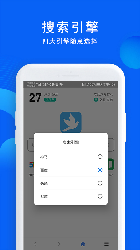 【智能搜索】聚合百度、必应、搜狗多种搜索引擎,根据您的个人习惯和需要,随心所欲。