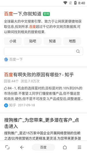 【智能搜索】聚合百度、必应、搜狗多种搜索引擎,根据您的个人习惯和需要,随心所欲。