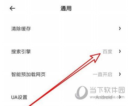 然后在打开的通用页面中找到搜索引擎的设置项;