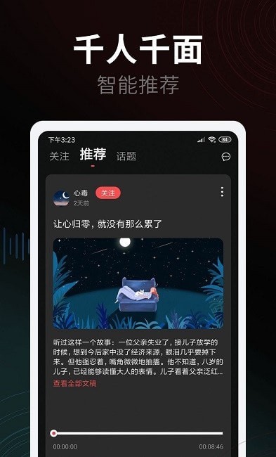 一站式高质量录制多样化音频,个性推荐更懂你,情感倾听,排忧解难,舒缓情绪,助你入眠,更好地去缓解你的心情;