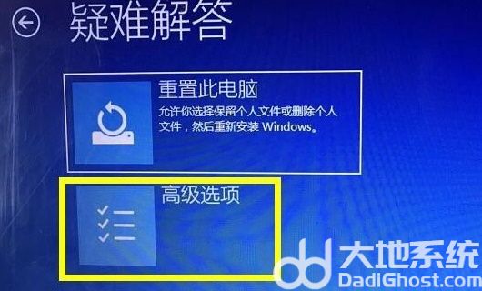 3、重启之后点击“疑难解答”,选择“高级选项”