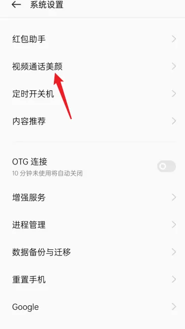 在系统设哄搁置界面,点击上方的视频通话美颜。