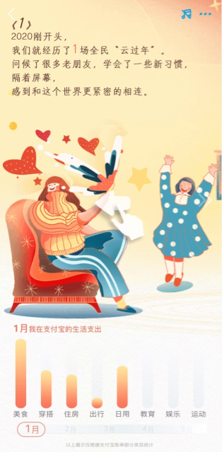 3、点击翻开,输入支付密码进行验证,翻页即可查看自己的支付宝2020年度账单;