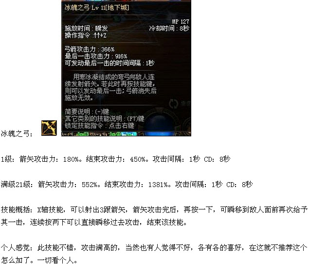 冰魄之弓,等级:21[多段攻击,最后一击附带击退效果,伤害不俗、]