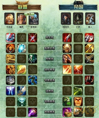 由于天赋和历史的不同,没有一个种族,能拥有所有的职业派系。