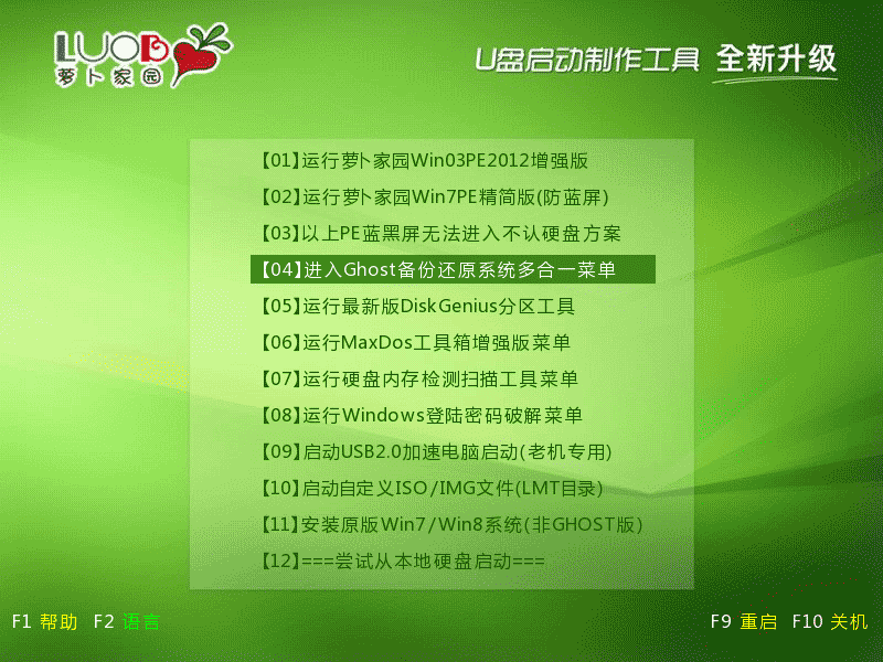 第二步:用萝卜家园U盘装系统软件作启动盘