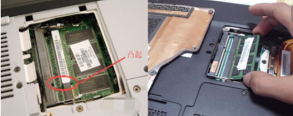 将笔记本关机之后,拆开笔记本底部D面,将内存重新插拔,如果不行的话,将内存的金手指部分使用橡皮或者纸擦一擦试试,再安装回去,尝试开机,当然如果有两根内存请换单根交替尝试进行开机,意思就是这根内存不行,单独插入另一根内存进行尝试。