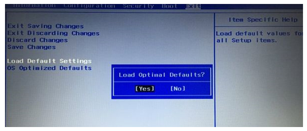 3、按方向上键选择Load Default Settings,回车,选择Yes,回车,加载Legacy默认配置,默认会禁用Secure Boot,若不确定,则转到Security下,查看Secure Boot是否是Disabled,若不是,就需手动更改;