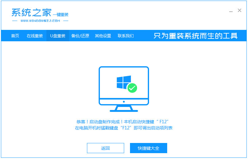 3、只需等待系统下载并成功制作U盘工具。然后将下载好的xp安装版系统镜像解压保存在u盘目录下,拔出U盘并将其插入需要重新安装系统的计算机。