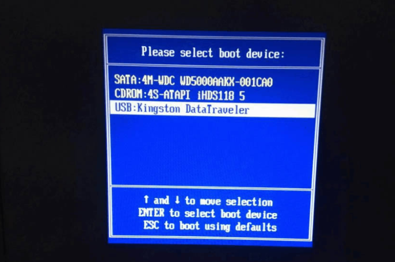 4、打开计算机后,热键立即为F12,ESC,F8等。出现的界面中找到U盘选项回车进入。