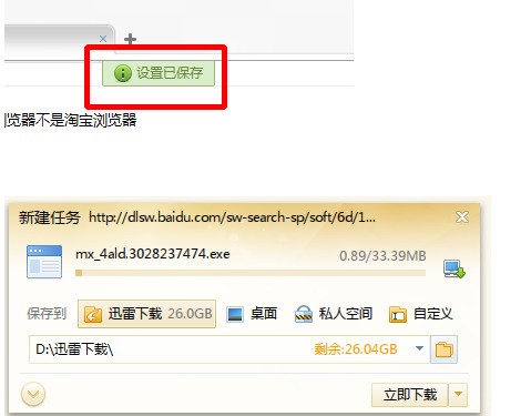 3、设置保存成功,这个时候再下载就会直接调用迅雷下载