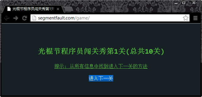 游戏地址: http://segmentfault.com/game/ ,游戏设计的很Cool。 总共10关。