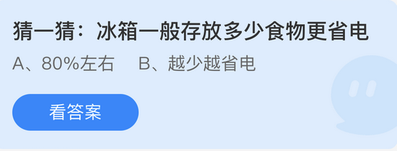 每天参与回答蚂蚁庄园内的庄园小课堂答题,就能为小鸡赢得饲料呀,庄园小课堂在2022年5月7日为用户们准备的题目就是“猜一猜冰箱一般存放多少食物更省电”、“苏打水有改变酸性体质的作用所以应该常喝多喝该说法”,今日正确答案是“80%左右”、“错误”,赶快打开支付宝参与答题咯。