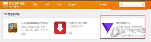 2、在猎豹应用市场里我们搜索“FLV”,然后下载这个叫“新FVD视频下载”的插件。