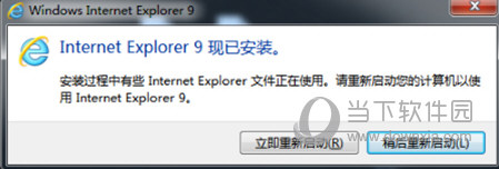 2、IE9安装成功,系统会要求重新启动才能运行IE9