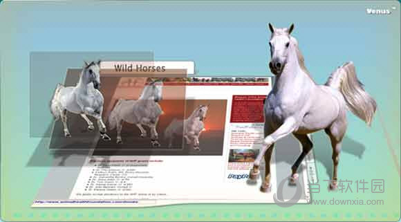 把平日常见的平淡无奇的网站变成眩酷多彩的生动网页;Venus的3D魔力可以把你在网上找到的任何图片显示出立体效果;而且由你自己决定具体的效果。Venus还可以帮你把视频立起来。待你创建了自己的world之后,你还可以和你的朋友共享,简单又有趣。