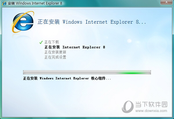 3、同意ie8浏览器(Internet Explorer 8)更新后将进入自动安装进度条界面,请耐心等待。