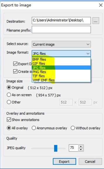 将DICOM转换为JPEG,BMP,PNG,GIF,TIFF