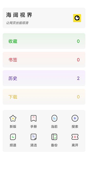 海阔视界的浏览器功能也非常的精简,首页内置了多个「书签」,还有各类网页导航、今日热榜等等。操作简单,有需要的可以下载来使用。